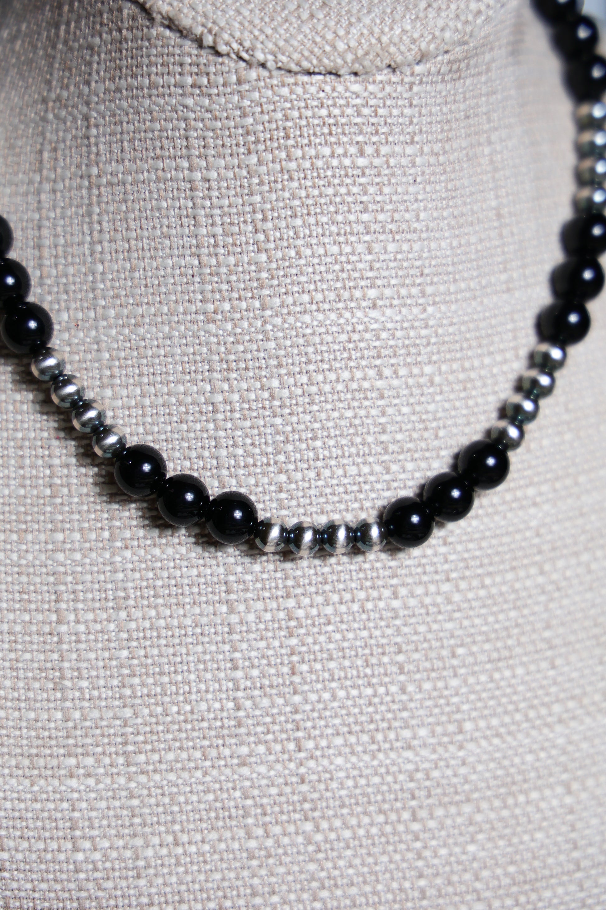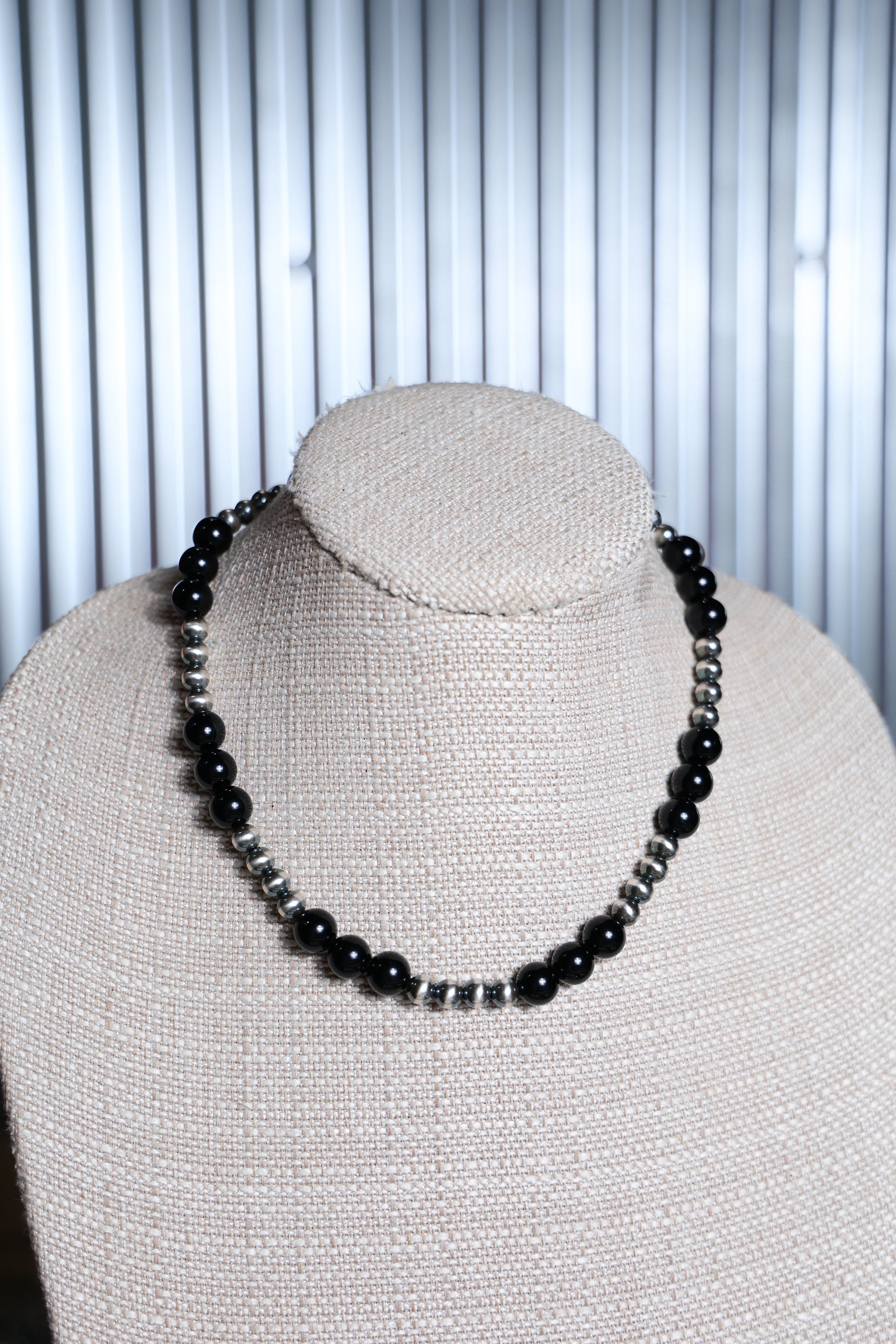 20.5” black onyx & 7mm Navajo Pearl necklace.