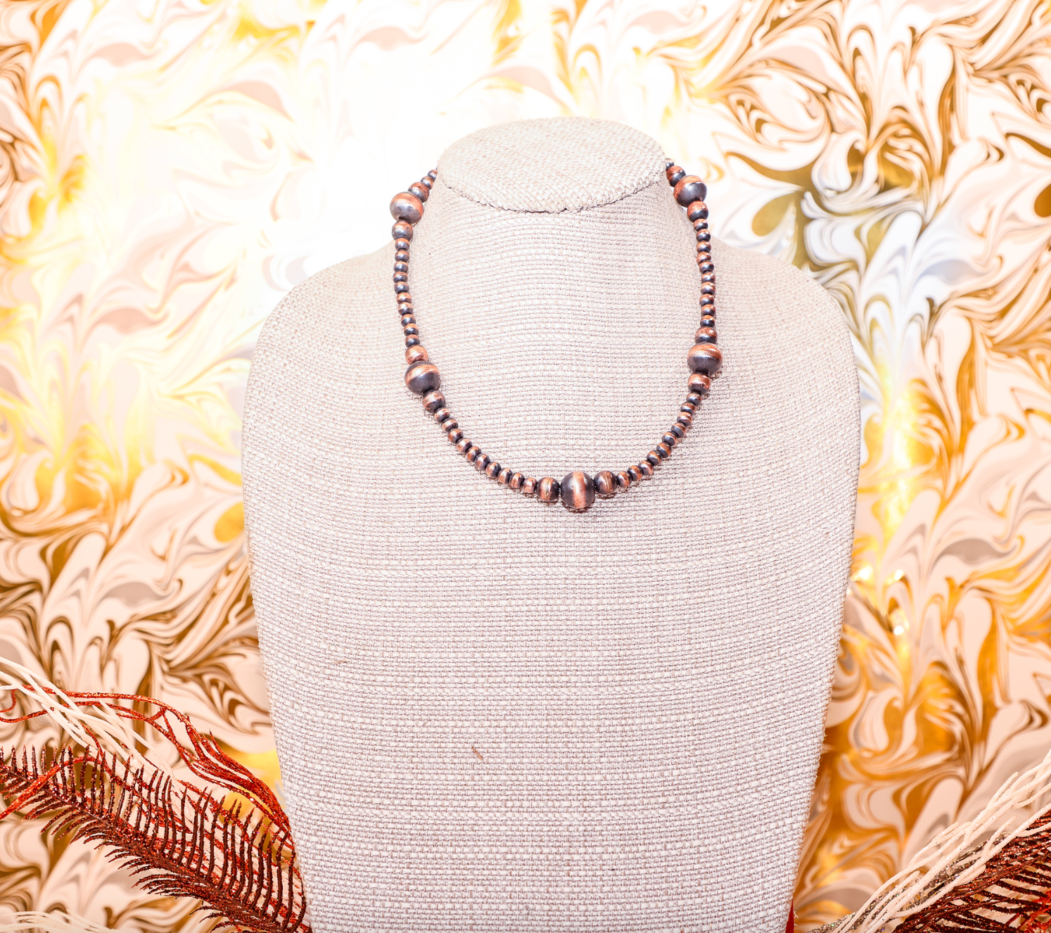 18.5" authentic 6mm,10mm,&16mm multi graduated copper Navajo Pearl necklace.