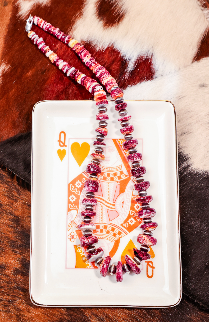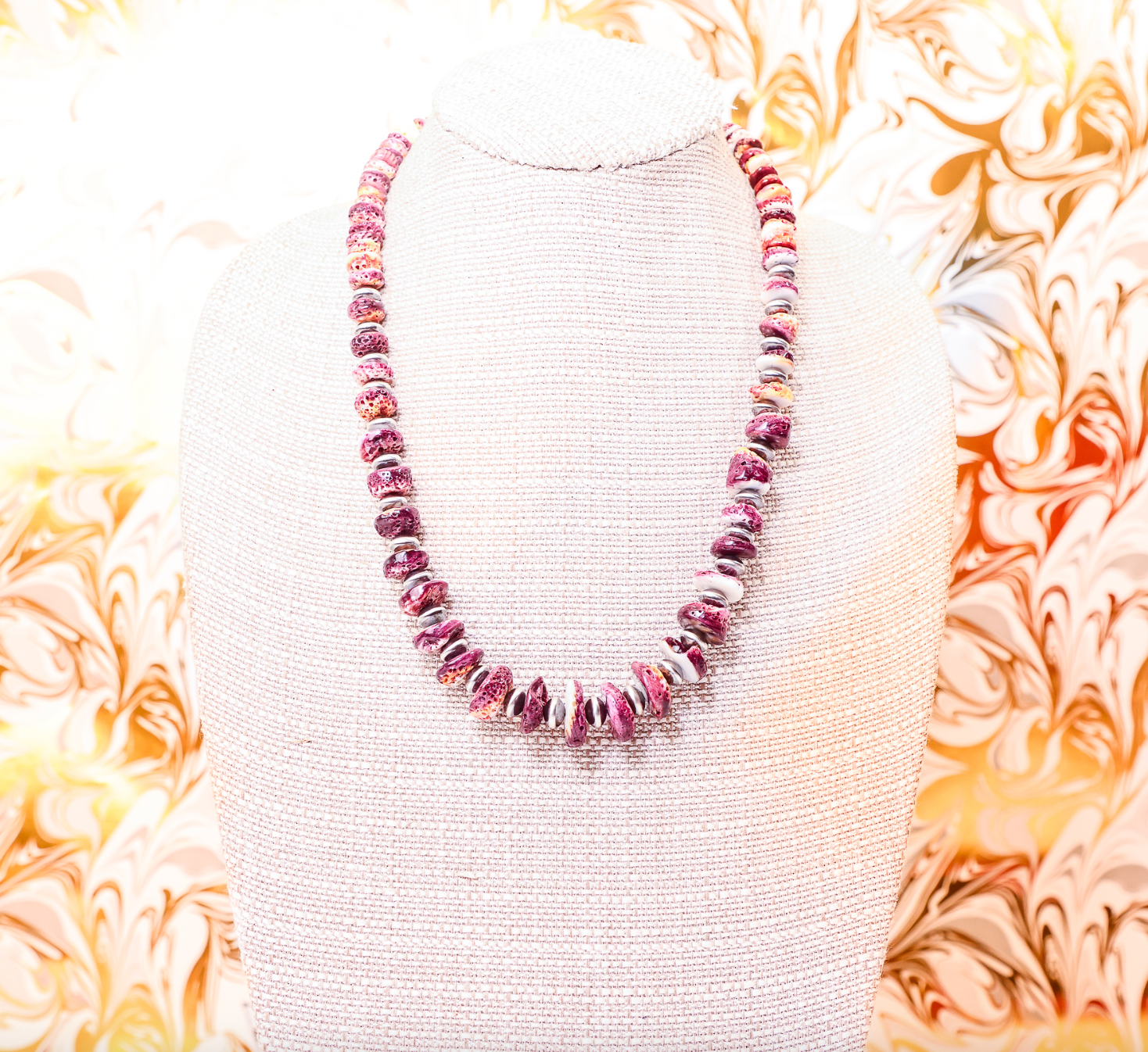 23” graduated purple spiny oyster necklace with Navajo Pearl saucers.